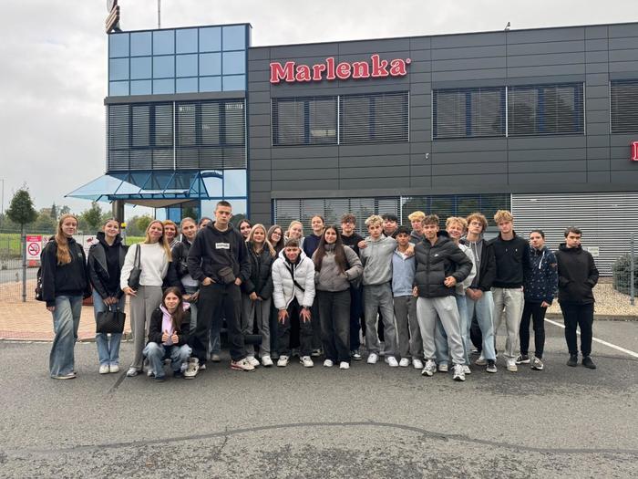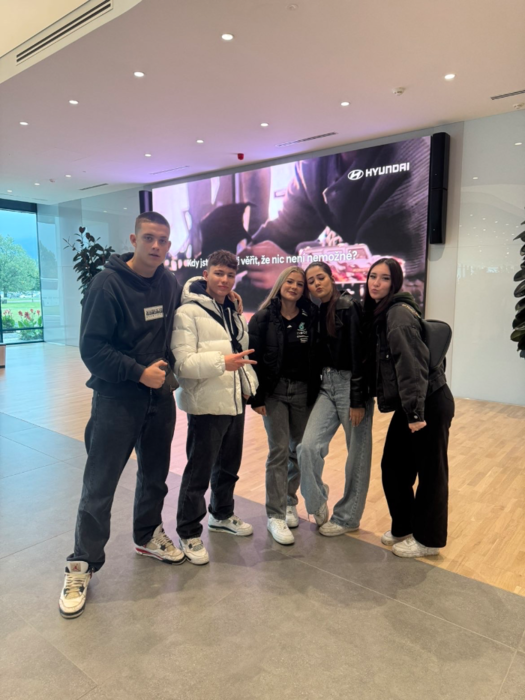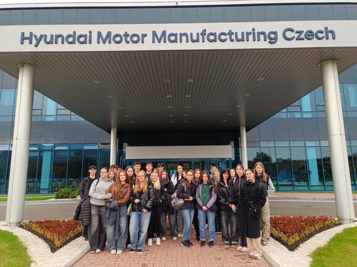 Ve dnech 30. 9., 7. 10. a 14. 10. 2025 se žáci druhých ročníků zúčastnili exkurze v Nošovicích ve firmě Hyundai Motor Manufacturing Czech a Marlence. V Hyundai nás hned při příchodu přivítal pan Šrámek, který nás pozval do zdejšího kinosálu a pustil nám krátké video o firmě Hyundai. Seznámil nás s modely aut, které právě vyrábí (jedná se o typovou řadu vozů i30, Tucson a elektromobil Kona Electric), pobočkami po celém světe a zmínil také výši hrubé mzdy zaměstnanců. Na závěr videa nás pozdravil samotný prezident HMMC. Následně jsme nastoupili do návštěvnických vláčků, které nás provezly areálem. S poutavým vyprávěním jsme projížděli halami podniku a seznámili se s jednotlivými úseky výroby, řízením výrobního cyklu a také péčí o zaměstnance.