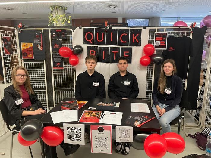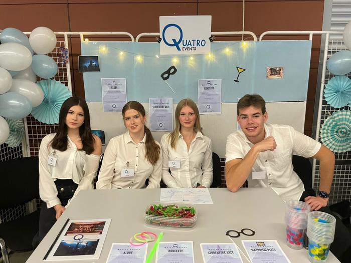 Fiktivní firma Quatro Events, s. r. o., kterou reprezentovali Bára Chlumová, Nela Hrabalová, Daniel Černý a Eliška Bahounková (3. A), obsadila 1. místo v kategorii Nejlepší logo.