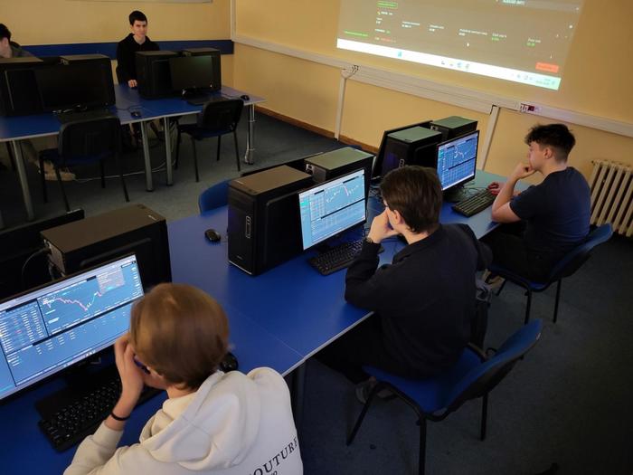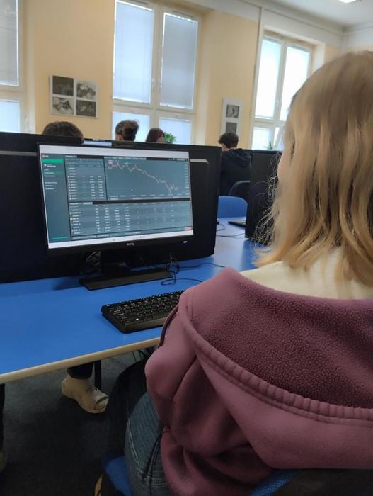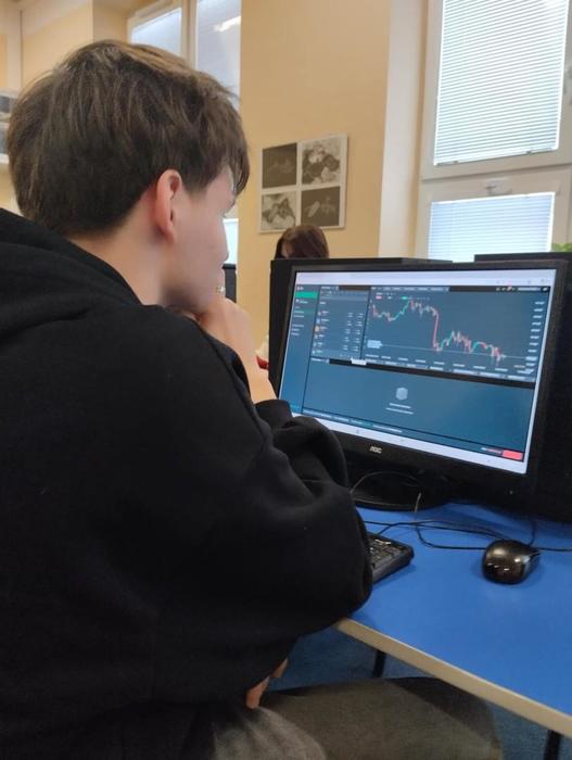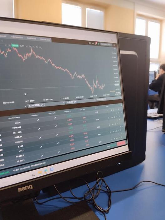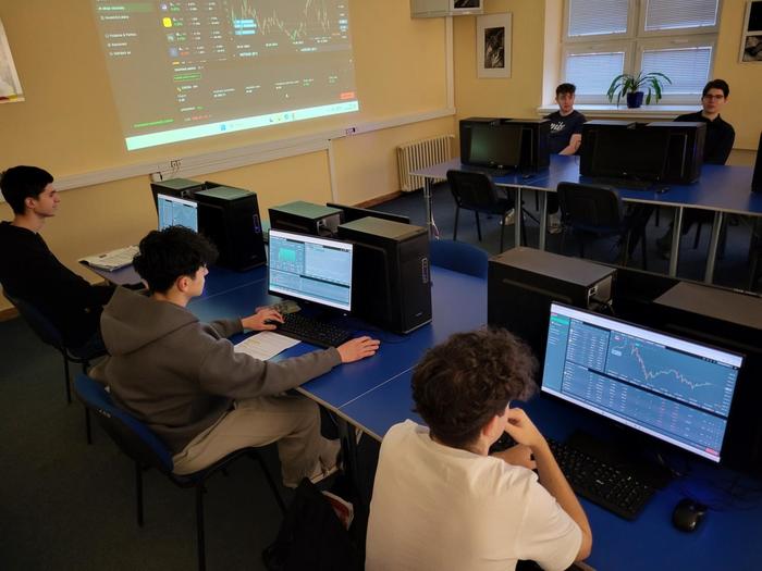 Žáci třetího ročníku měli možnost si v hodinách ekonomiky vyzkoušet, jaké to je obchodovat na burze. Seznámili se s jednou z největších mezinárodních fintech a makléřských společností poskytující online přístup k obchodování a investování do tisíců finančních instrumentů – XTB. Prostřednictvím platformy xStation a demoúčtu, kde žáci měli vstupní kapitál 200 000 Kč, mohli nakupovat akcie, ETF (včetně zlomků) a obchodovat CFD na měny, komodity i kryptoměny.