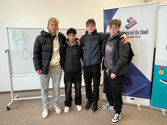 Děkujeme našim čtyřem reprezentantům – Filipu Koláčkovi ze třídy 2. A a Jakubu Holečkovi, Jakubu Zemanovi a Vojtovi Švirkovi ze třídy 2. B – za výbornou reprezentaci školy, zodpovědnou přípravu a skvělé sportovní nasazení. Gratulujeme k dosaženým výsledkům a přejeme mnoho úspěchů v dalších soutěžích!